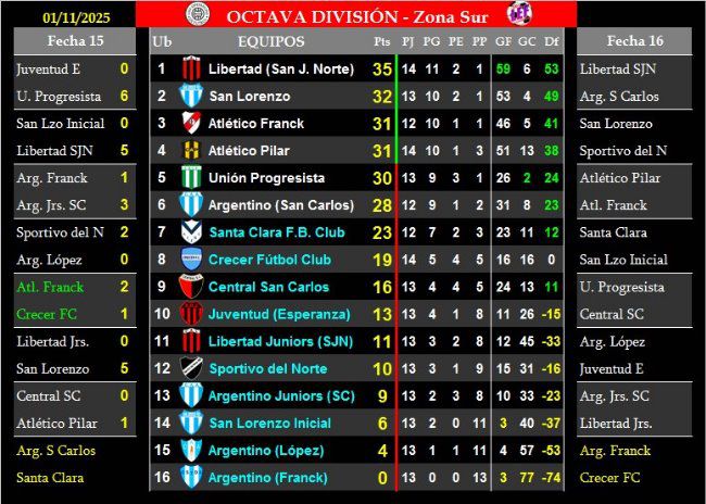 LEF Octava Clausura - Resultados y Posiciones - Zona Sur
