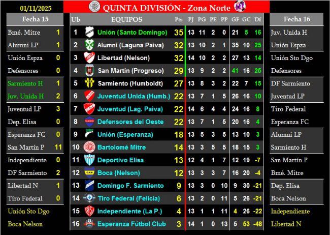 LEF Quinta Clausura - Resultados y Posiciones - Zona Norte