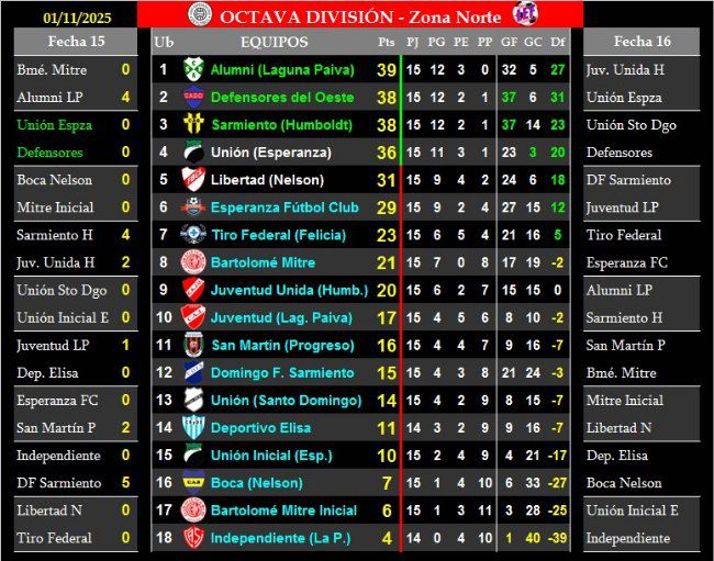 LEF Octava Clausura - Resultados y Posiciones - Zona Norte