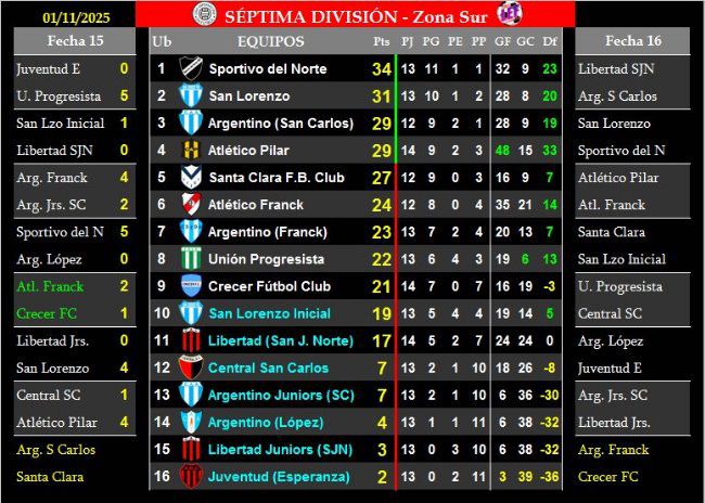 LEF Séptima Clausura - Resultados y Posiciones - Zona Sur