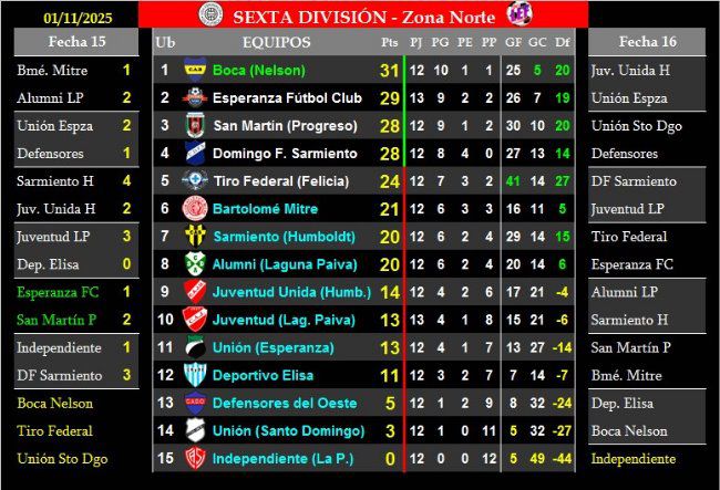 LEF Sexta Clausura - Resultados y Posiciones - Zona Norte