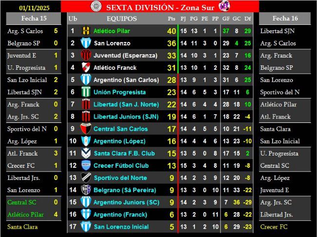 LEF Sexta Clausura - Resultados y Posiciones - Zona Sur