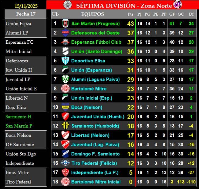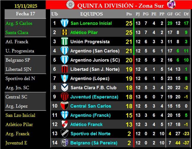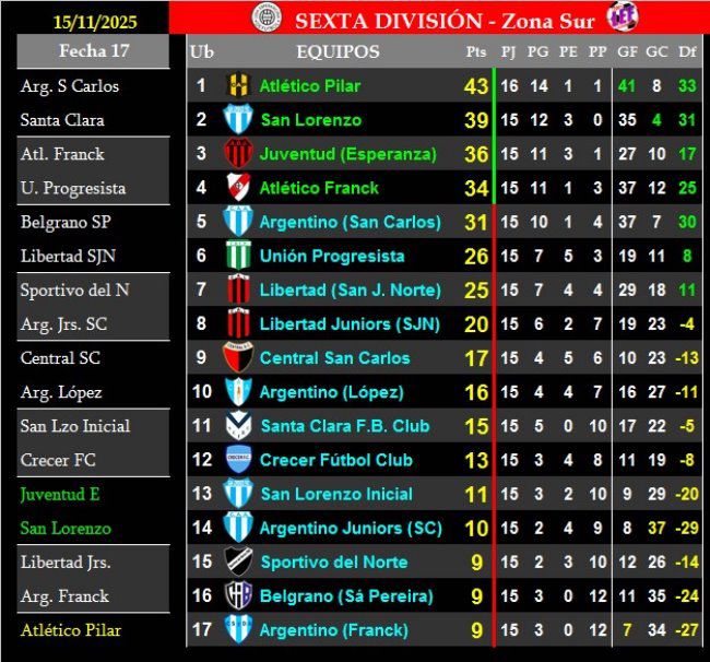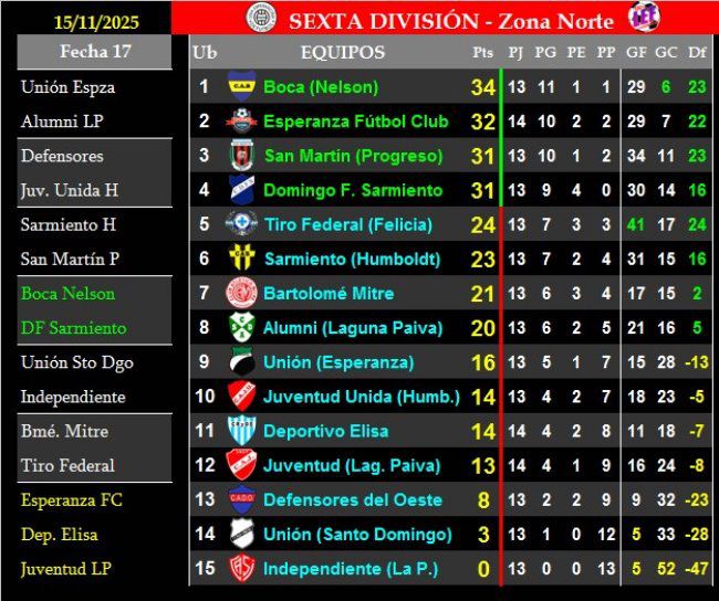 - Sexta: CSyDA 1 (Tomás Benítez) vs. CAB 0.