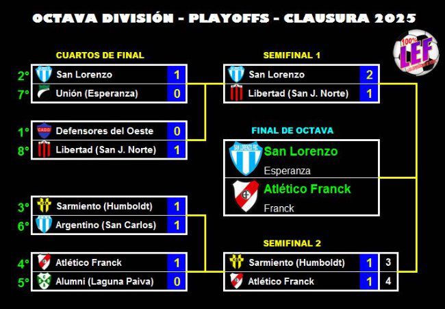 La octava división del Club Atlético Franck hizo de local en cancha del Club Atlético Juventud Unida de Humboldt frente al Club Atlético Sarmiento de ese medio.